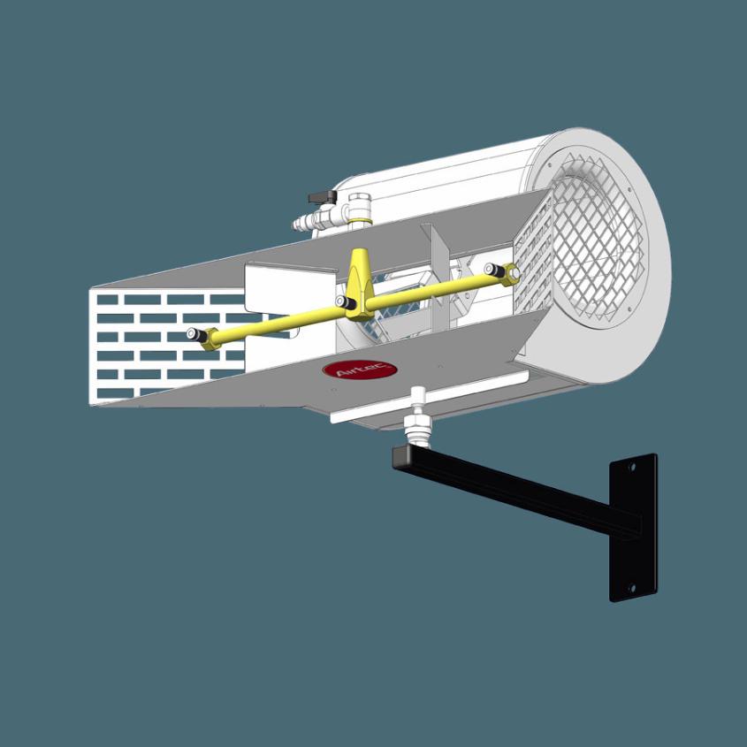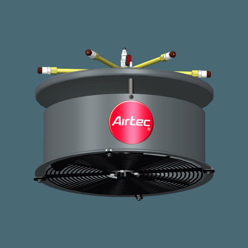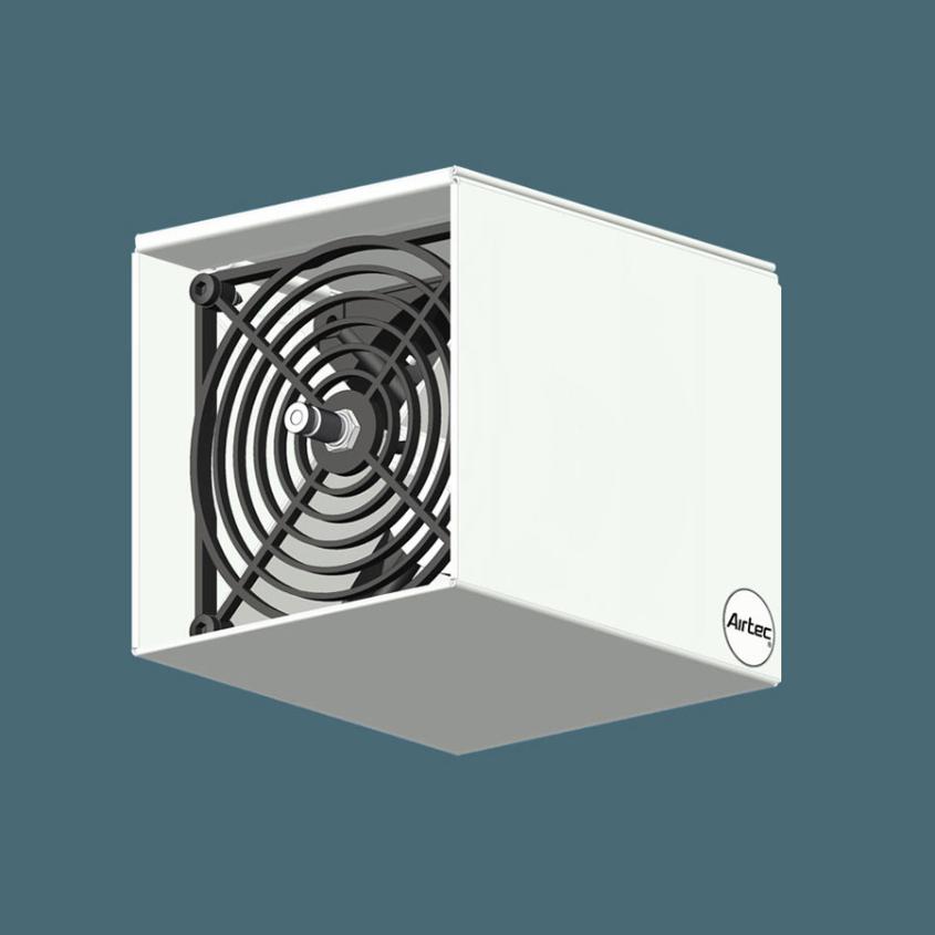 Hver forstøver er forsynet med en ventilator, som blæser varm luft til dysen. Den varme luft fordamper det forstøvede vand hurtigt og sikkert. Forstøverne er beregnet til at kunne fungere optimalt under forskellige forhold ved en loftshøjde på 2,5 meter og derover.